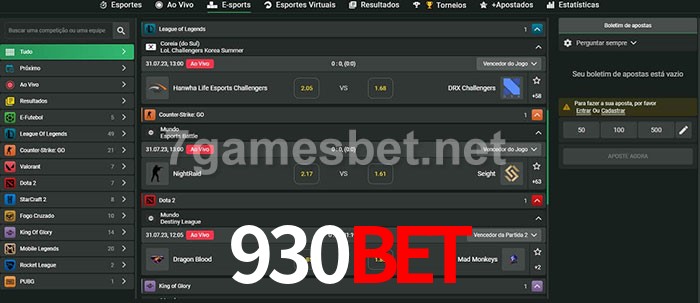 O 930bet oferece uma grande seleção de opções de apostas em e-sports com probabilidades competitivas